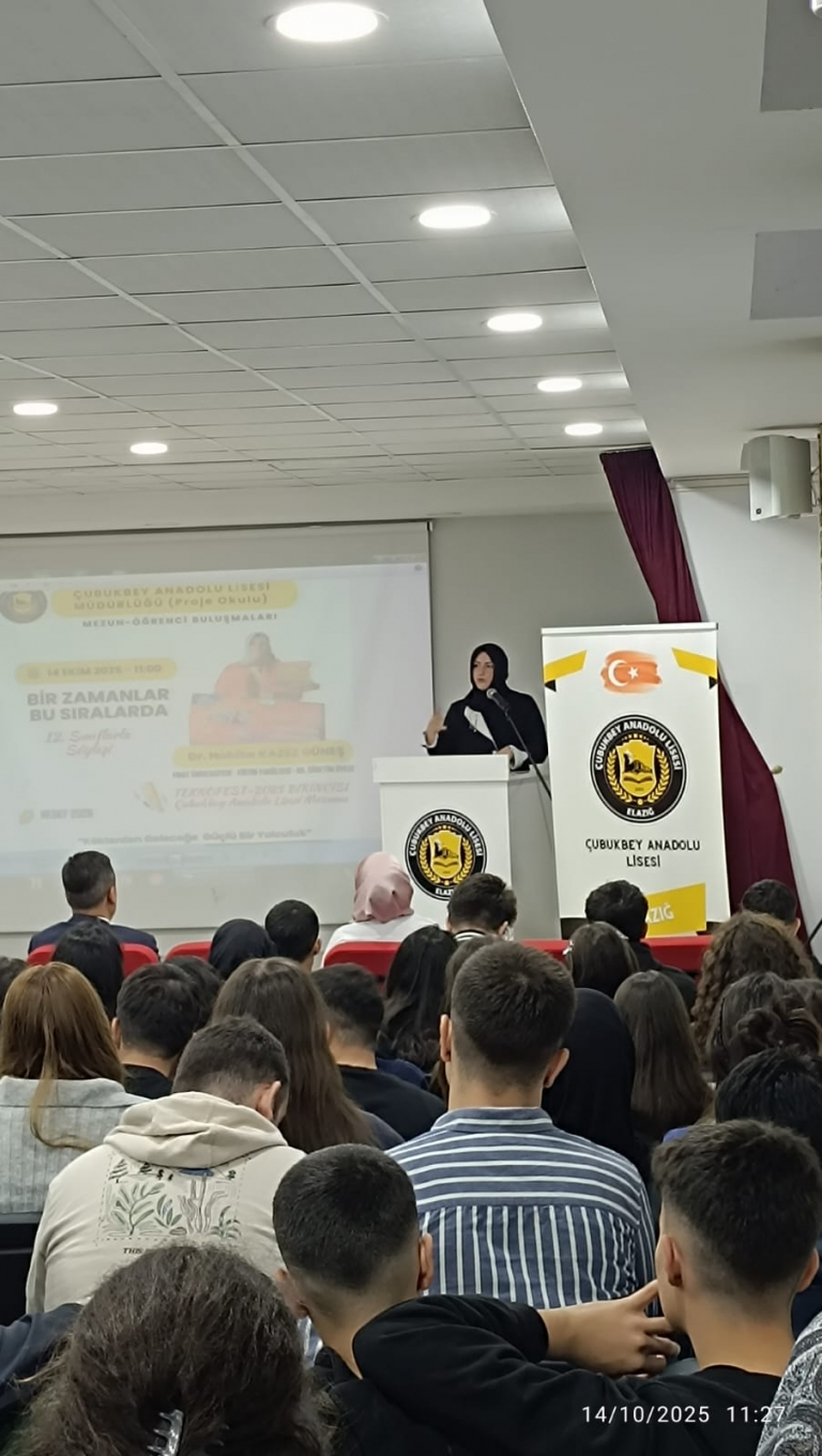 Bölümümüz Öğretim Teknolojileri ABD öğretim üyelerinden Dr. Öğr. Üyesi Habibe KAZEZ GÜNEŞ ilk mezunlarından olduğu Çubukbey Anadolu Lisesi’nde "Mezun Öğrenci Buluşmaları" kapsamında 14 Ekim 2025 tarihinde saat 11:00’de okulun 12. Sınıf öğrencilerinin motivasyonlarını arttırmak amacıyla bir kariyer söyleşisi gerçekleştirmiştir. Okul müdürü Dr. Bekir EROL tarafından plaket ve çiçek takdim edilen Kazez-Güneş lise sıralarından itibaren kariyer yönetimi, TÜBİTAK projeleri ve Teknofest yarışmaları için öğrencilere katılım süreci, fırsatlar ve burslar hakkında bilgilendirme toplantısıyla tecrübelerini paylaşmıştır.